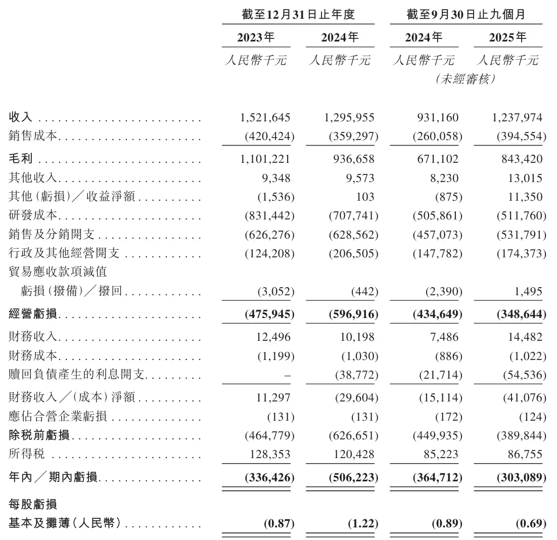 截至2025年前九个月,先声再明医药实现营收12.38亿元,毛利为8.43亿元,运营亏损3.49亿元,期内亏损达到3亿元。