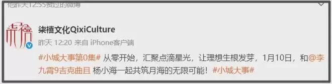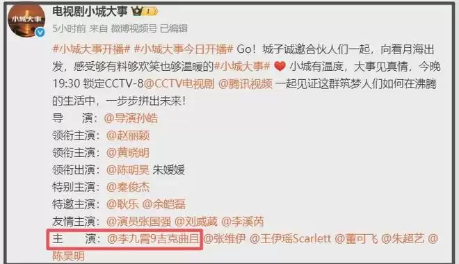 与此同时,《小城大事》的最新也没有敏感性,还是照旧发布宣传,并将李九霄列在主演行列。