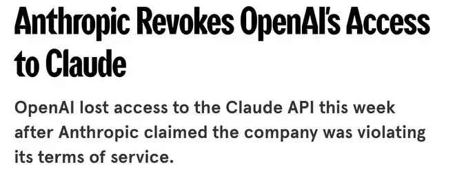 早在2025年8月,Anthropic就曾以类似理由封杀过OpenAI的开发者级API访问权限。