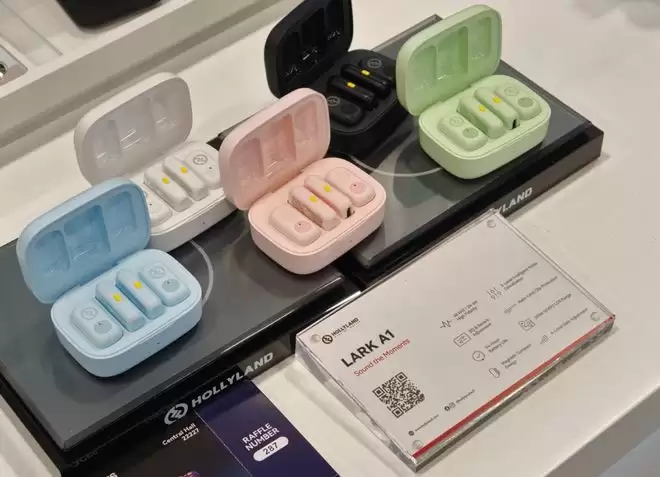 与此同时,HOLLYLAND猛玛还展出了面向不同创作者群体的LARK M2 和LARK A1等产品。其中 LARK M2 支持更高采样率和更远的传输距离,并带来“一键静音”等快捷降噪设计,同样能让你直观感受HOLLYLAND猛玛降噪技术的强大,而且,这一代的麦克风在体积上进一步缩减,即使是佩戴在领口也几乎感觉不到重量。