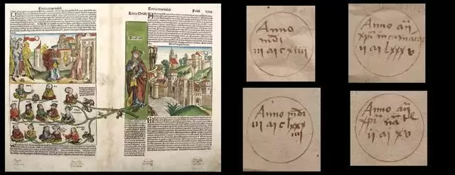 在《纽伦堡编年史》页面边角,也留着一个500多年来困扰学界的“未解之谜”:上面有四个手写的神秘圆圈,里面是几行字迹残损模糊、夹杂着大量中世纪拉丁文缩写的注释。学者仅能辨识其中“Anno”等个别字符,至于这些标记和符号到底是什么意思,一直没有答案。