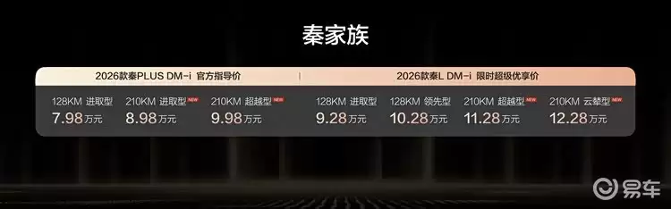 2026款秦家族DM-i亲民价发布:续航越级、配置拉满