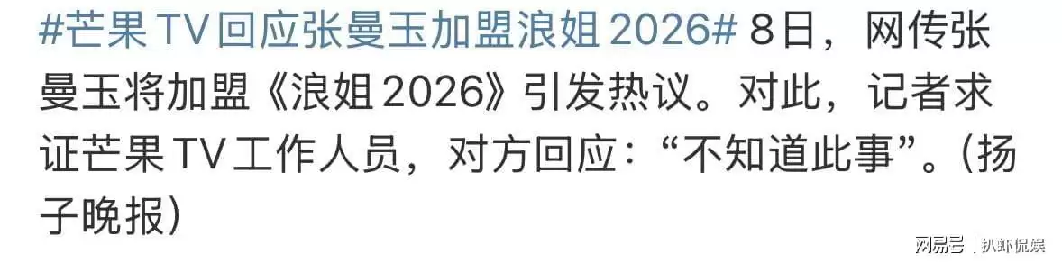 然而,随着事件不断发酵,有知名媒体也向主办单位进行电话求证,试图确认网传张曼玉加盟《浪姐2026》是否属实。但工作人员的回答,却给所有期待的网友泼了一盆冷水。