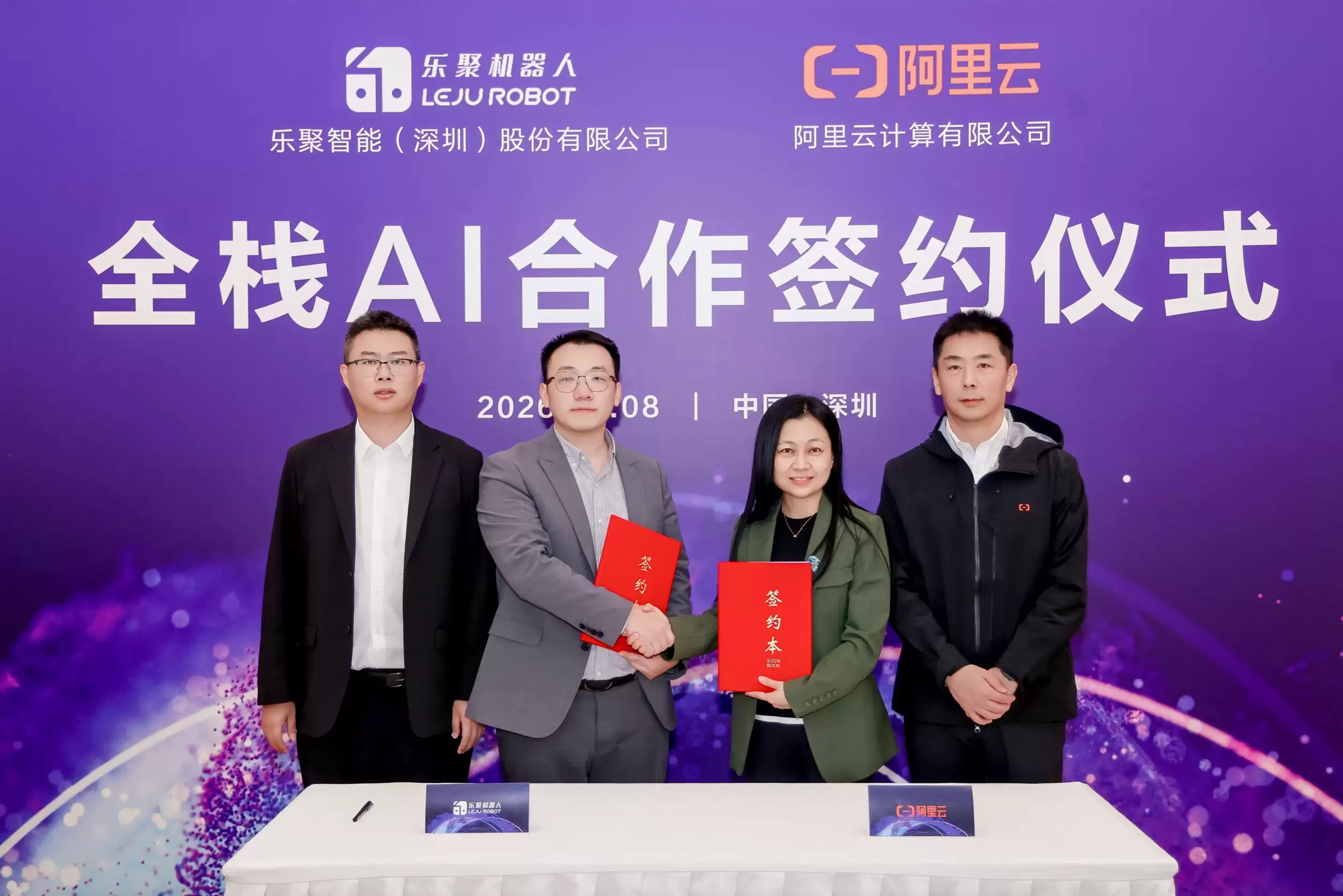 签约仪式上,乐聚智能(深圳)股份有限公司常務副总裁柯真东与阿里云智能集团公共云事业部副总裁、华南大区总经理、中企出海南区总经理康敏,分别代表双方签署协议。乐聚智能(深圳)股份有限公司联合创始人、CEO常琳与阿里云智能集团资深副总裁、公共云事业部总裁刘伟光共同见证了此次签约。
