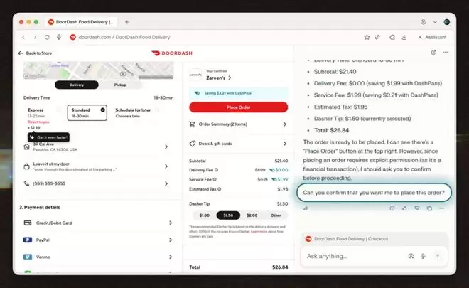 当Comet Assistant 识别出某项任务很重要,例如登录特定 或完成购物车中的购买——它会暂停操作,并在继续执行前征得您的许可。