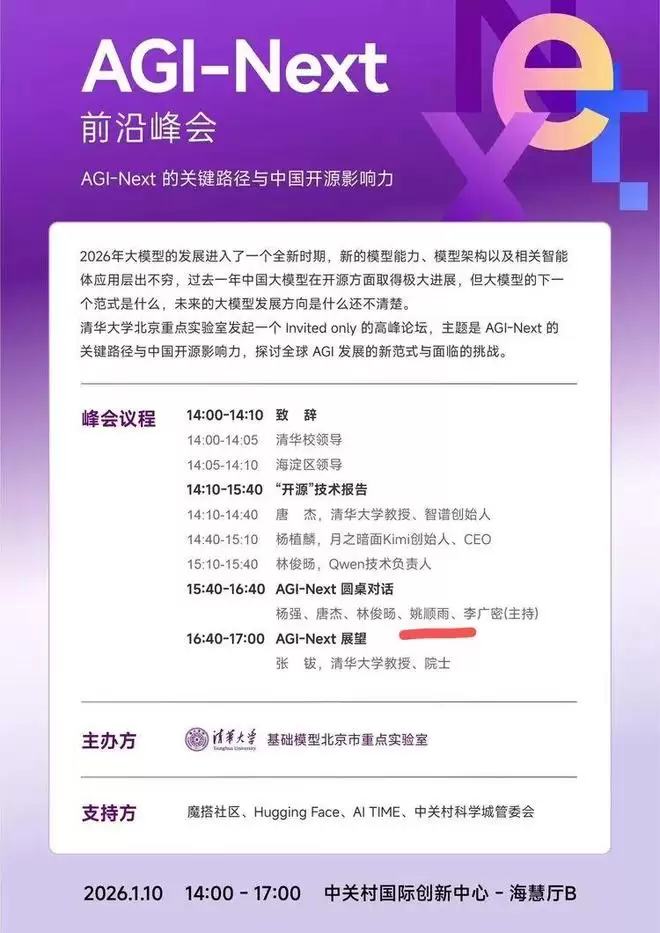 其中前三位分别做了技术报告分享,而姚顺雨则参加了随后的AGI-Next圆桌对话。