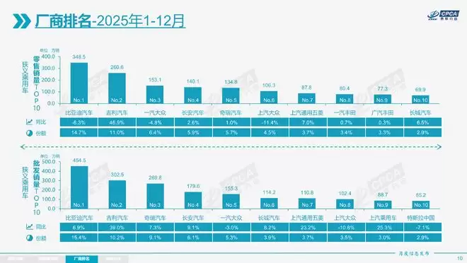 2025年厂商销量排名 乘联会