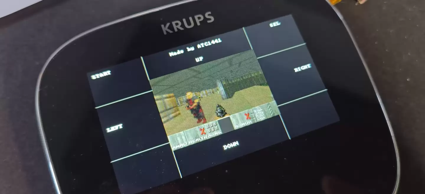 在搭建好完整的固件环境后,博主成功将初代《毁灭战士》移植到了这台电压锅上运行。