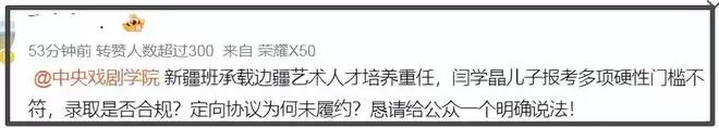 至于分数低也是为了照顾当地考生,文化课能比普通表演系低30分,每年只招20人,专业测试比普通班更严。而闫学晶曾透露全家都是北京户口,闫学晶儿子公开信息也都与招生要求无关,所以闫学晶儿子是否涉嫌违规入校也是一大争议,目前已经有网友向相关部门举报了。