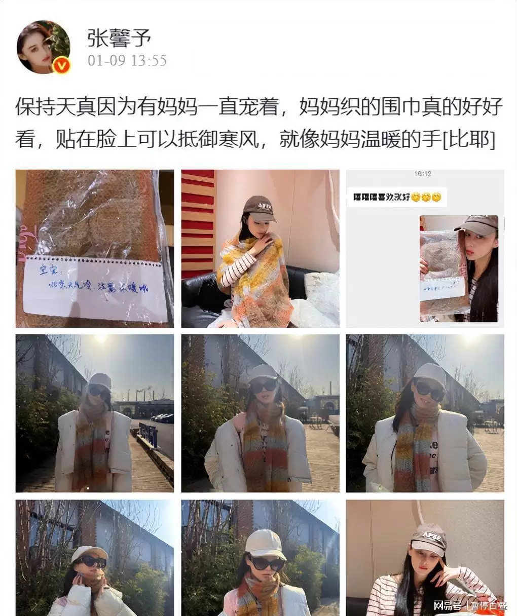 张馨予晒妈妈手织围巾,随手一披惊艳似画报