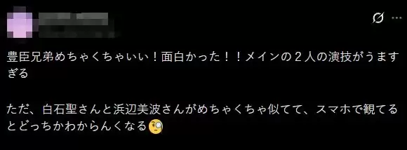 “《丰臣兄弟》也太好看了吧!笑到停不下来!!两位主演的演技真的绝了