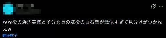 “饰演宁宁的滨边美波,还有大概是饰演秀长妻子的白石圣,两人长得简直一模一样,根本分不出来w”▽