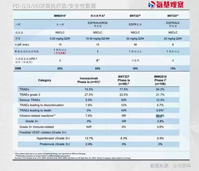 以IMM2510为例,作为早期管线,此前公司强调其VEGF靶点优势,称其能够结合除VEGF-A之外的多种VEGF受体配体,是ADCC加强型VEGF×PD-L1双靶点抗体类药物。