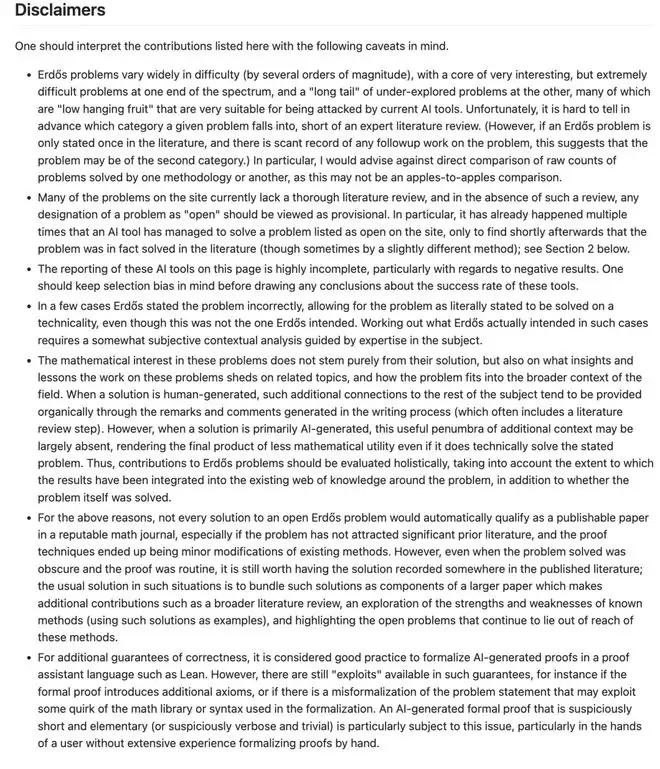 他在Erdős Problems项目相关的GitHub页面补充了更系统的说明与警示。