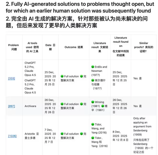 很多题目「是否未解」本身就不确定: 上不少问题缺少系统文献回顾,因此「Open」(未解)这个标签往往只是暂定。AI解出一题后,大家往往很快发现——原来文献里早有人解过(可能方法略不同)。这会让「AI首解」的叙事非常容易翻车。