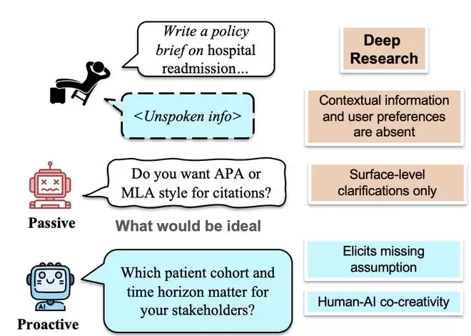研究团队认为,这项研究本质上是在进行用户与 AI 之间的深度研究,通过对话同步上下文、缩小信息差。因为当 AI 和用户都更清楚最终输出的目标时,有利于后续的人机协作,从而创造性地完成更深度的任务。