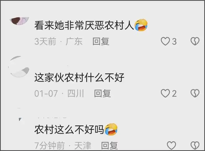 此话一出遭到网友疯狂吐槽,认为她飘了,看不起农村人,一句话就暗示阶层。