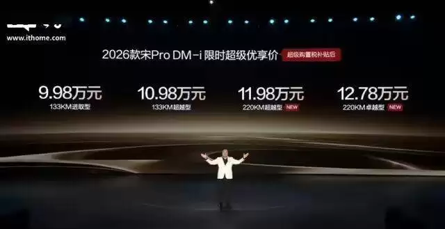 作为本次发布会的焦点,2026款宋Pro DM-i长续航版以其卓越的性能和亲民的价格吸引了众多目光。其中,220KM超越型在超级购车税补贴后售价为11.98万元,而220KM卓越型则为12.78万元。这款新车不仅拥有220公里的超长纯电续航,在满油满电状态下综合续航可达1600公里,其百公里NEDC亏电油耗仅为3.2升,被誉为一款真正的“SUV省油王”。