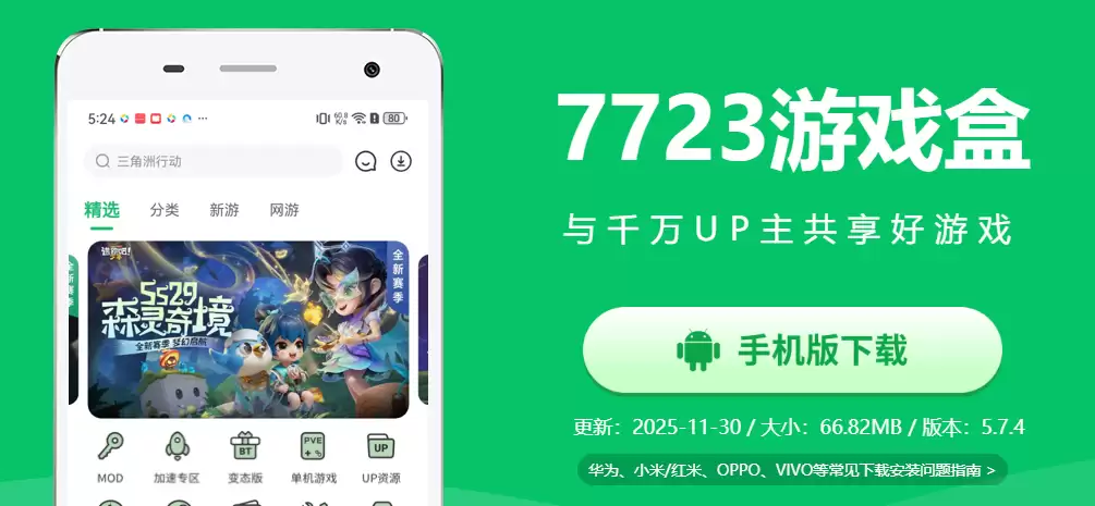 随着智能手机的飞速普及,我们为广大的手机用户量身打造了“7723游戏盒”,它专注于手游推荐,让您无需烦恼如何选择。您可以根据自己的手机型号,找到与之匹配的安卓游戏,在这里随心所欲地挑选心仪的游戏内容。