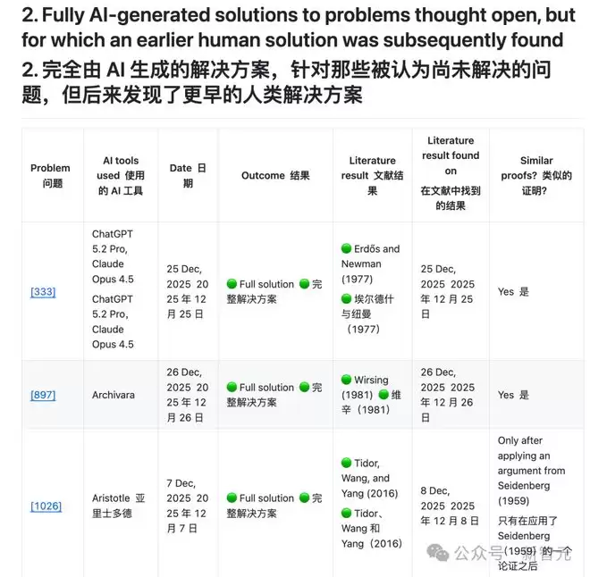 很多题目「是否未解」本身就不确定: 上不少问题缺少系统文献回顾,因此「Open」(未解)这个标签往往只是暂定。AI解出一题后,大家往往很快发现——原来文献里早有人解过(可能方法略不同)。这会让「AI首解」的叙事非常容易翻车。