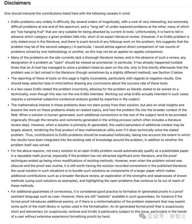 在他更新的「AI contributions to Erdős problems」页面里表示,看AI在Erdős问题上的成绩单时,千万别只盯着「解了多少题」,还特别注意下面几点: