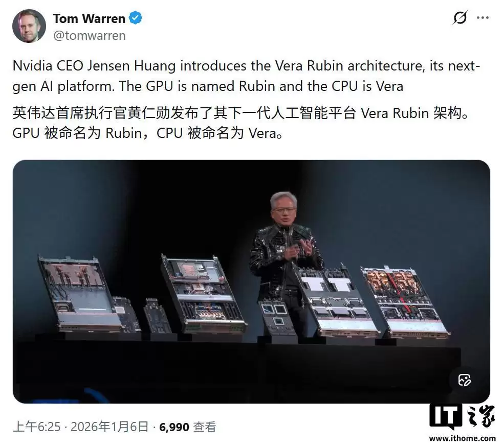 1月6日,IT之家综合报道,在今日举行的CES 2026主题演讲中,英伟达首席执行官黄仁勋发表了主旨演讲,正式发布了新一代“Rubin”计算架构,并将其定位为当前AI硬件领域的“最先进技术”。据悉,该架构现已进入全面量产阶段。