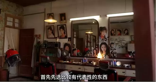 发廊里摆放着笨重的老式烫发机,墙上贴满香港影星海报,女孩留着夸张的大波浪发型。