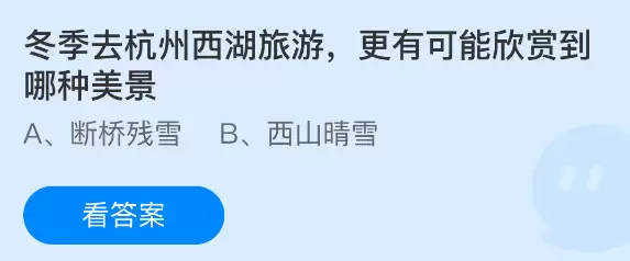 冬季西湖旅游必看:支付宝蚂蚁庄园2026年1月12日答案揭秘美景