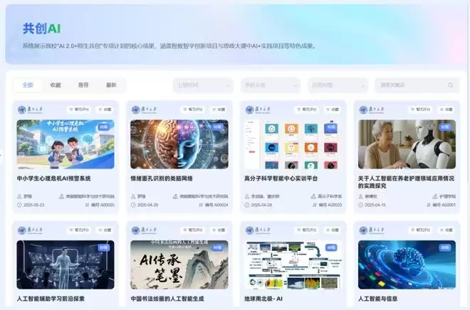 登录该平台,师生看到的并非是静态的产品陈列页,而更像一个动态的创新集市。案例平台是资源汇聚的核心。这里按照三级进阶路径,收录了两年来全校师生在ai教育领域的优秀实践超100项,既能找到如ai大课这样的系统学习资源,也能看到一线教师的真实教学案例。