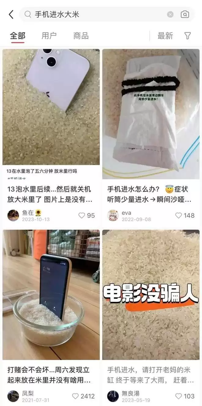 短时间充不上电还是小事,真的进水损坏了,大概率到最后都得自费维修。为了减少损失,各类“自救偏方”也层出不穷。其中,米缸成为了进水手机的“疗伤之地”。