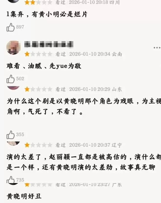 这种强烈对比放大了观众对黄晓明演技的不满情绪。