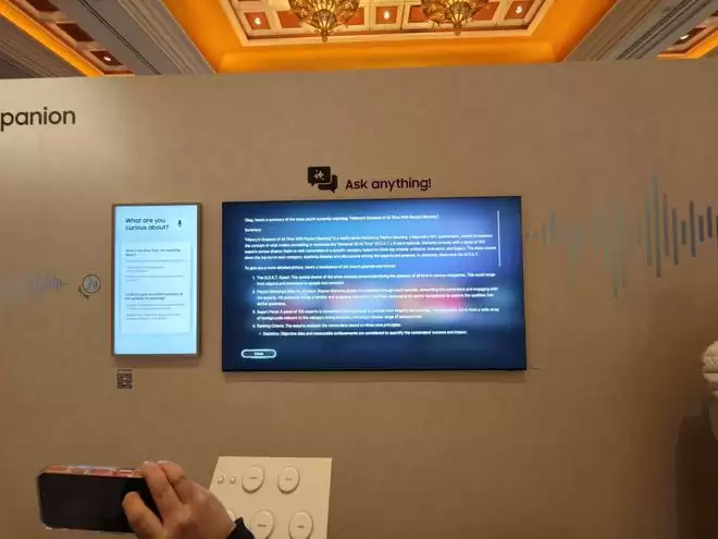 因此,三星还在现场展示了Vision AI伴侣(VAC),旨在让电视成为更直观、可对话并且个性化的全新智能平台。