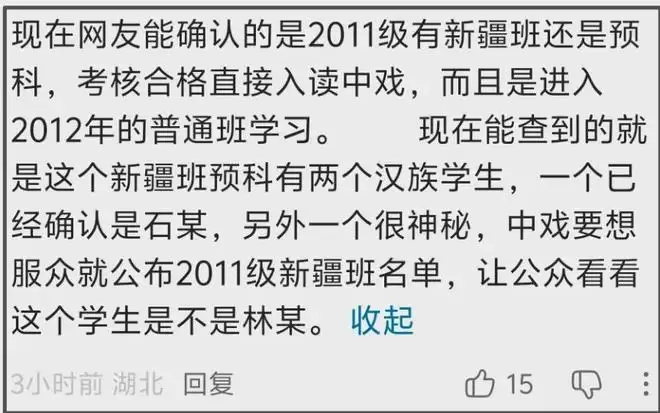 不得不提的还有闫学晶儿子高考争议,中戏出面回应表示闫学晶儿子高考期间没开设新疆班,结果一转头,网友就扒出疑似闫学晶儿子在场的新疆班合照。