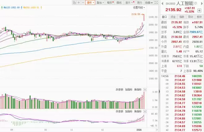 【环球网财经综合报道】2026年1月12日,人工智能(AI)赛道表现亮眼。AI营销、Sora概念、智谱AI、多模态AI及AIGC等细分领域全线飘红,带动超过20只个股实现“20cm”涨停。与此同时,零售业在AI技术的赋能下正迎来深刻变革,随着谷歌与沃尔玛的强强联手,AI购物概念股瞬间成为市场焦点,机构资金更是扎堆盯上了一批具备高增长潜力的标的。