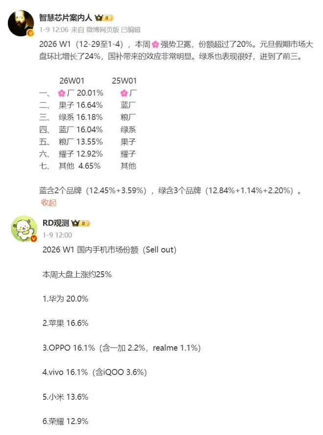 2026年开年第一周,国内手机市场交出了一份令人振奋的答卷,在“国补”政策与元旦假期消费热潮的双重驱动下,市场大盘环比大增24%。