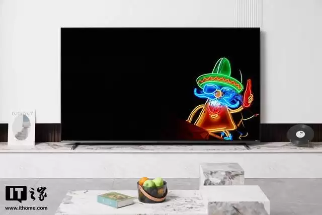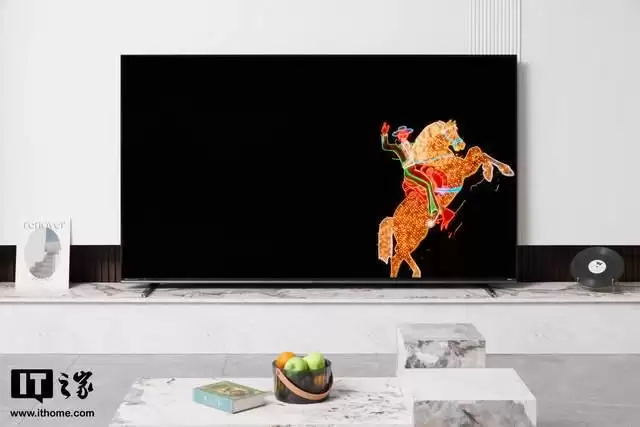 配合全平一体化的背部设计,没有传统电视常见的“小书包”隆起,这使得它在挂墙安装时能够实现极限贴墙,仿佛一幅巨大的壁画。