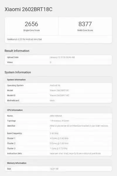 其单核得分2656,多核得分8377,这一成绩意味着它不仅稳压上一代的骁龙8 Gen 3,甚至在多核效率上已经能够与高通当家旗舰骁龙8至尊版(8 Elite)分庭抗礼。