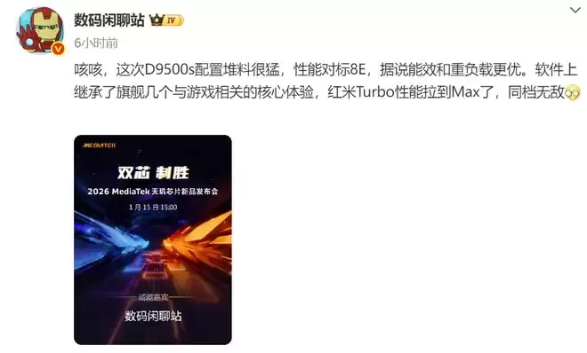 而天玑9500s的核心竞争力在于其满配大缓存与超大规模GPU的组合,更是有博主透露该芯片在能效比和重负载场景(如大型3D游戏)下的表现甚至优于竞品。