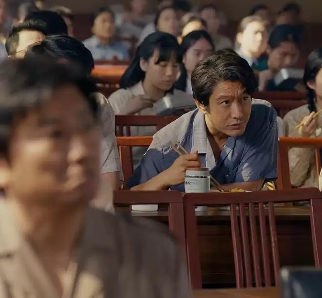 周围那些老演员吃饭的样子特别自然,夹菜、咀嚼都很真实,一看就是经常在食堂吃饭的人。