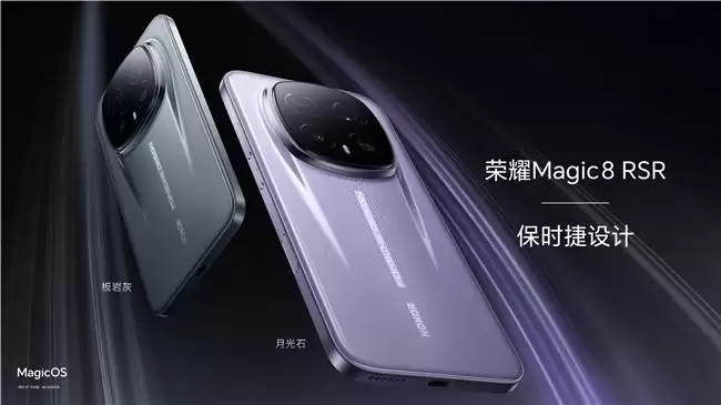 在设计层面,荣耀Magic8 RSR 保时捷设计从保时捷经典跑车中汲取灵感,机身线条融入流线型轮拱与标志性车灯元素,后盖装饰区域通过几何切割工艺呈现超跑般的动感姿态。色彩方案由斯图加特原厂色彩团队定制,以保时捷稀有车漆Moon Gem和Slate Grey Neo为蓝本,推出月光石与板岩灰两款专属配色,通过多层镀膜工艺实现金属光泽与哑光质感的平衡,强化视觉层次感。