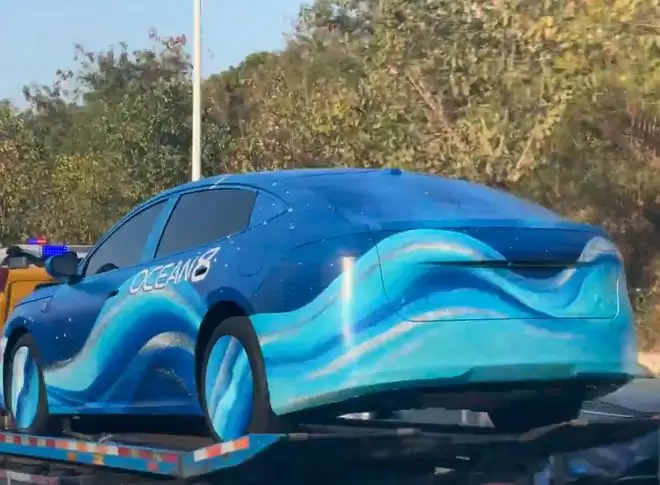 就在昨晚,小红书博主“铁军训练营”曝光了一组比亚迪全新轿跑车型的谍照。新车全身覆盖着伪装车衣,上面印有醒目的海浪纹理和“OCEAN 8”字样,据该博主称,这款新车将被命名为“海豹08”。