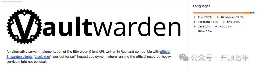 在 GitHub 上可以发现 Vaultwarden 这个项目,它是一个可以自托管的 Bitwarden 密码服务器替代方案,完全由 Rust 实现。