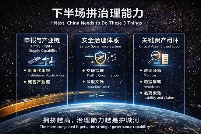 结论可以更直接:低轨竞争的下半场,拼的不只是发射数量,更是谁能把拥挤环境治理成可控秩序。轨道越拥挤,治理能力越会成为最硬的护城河,也是最能把安全焦虑转化为战略主动权的抓手。