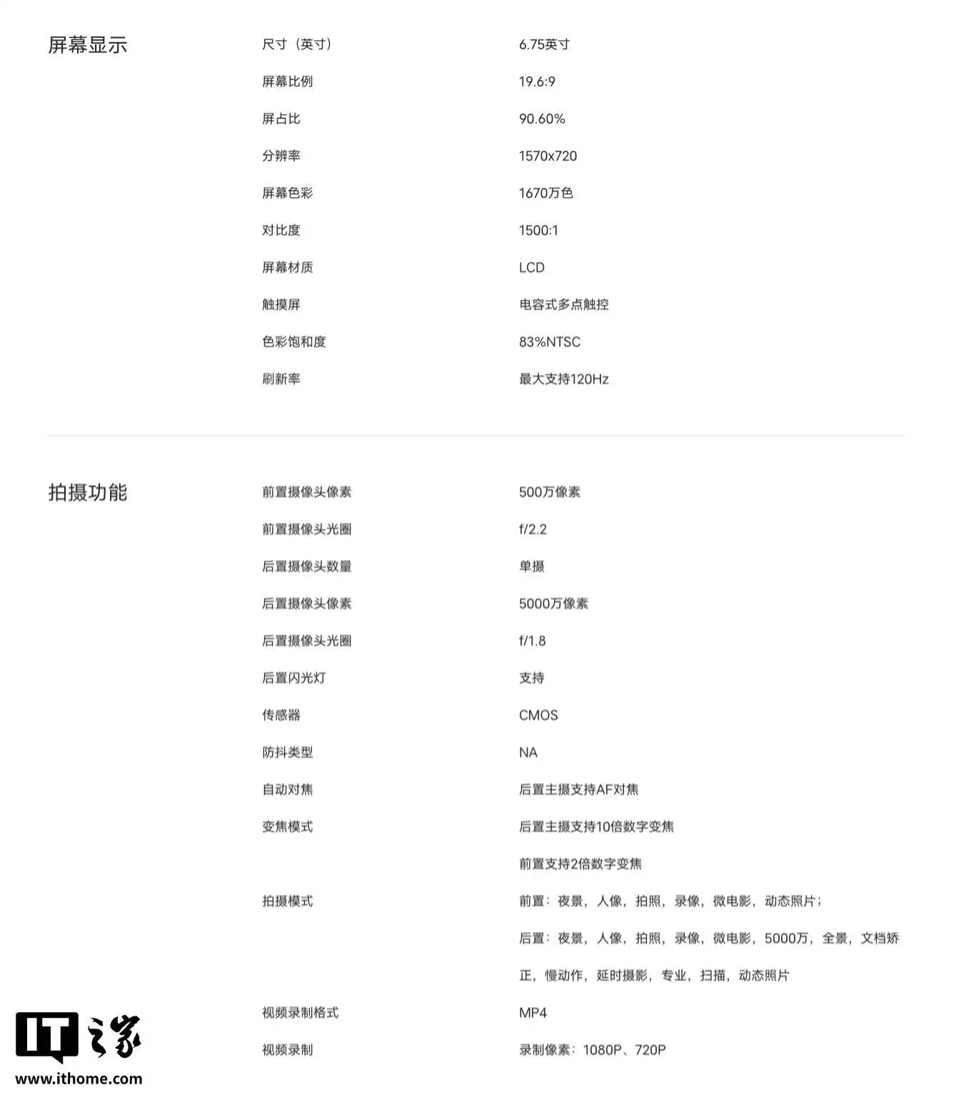 vivo Y500i提供了曜石黑、星河银、凤迎金三款配色选择。机身厚度为8.39毫米,重量约219克。手机正面配备了一块6.75英寸的LCD屏幕,分辨率为1520x720,支持120Hz刷新率,并搭载了一颗500万像素的前置自拍摄像头。手机背面采用了双摄造型设计,但实际上仅配备了一颗5000万像素的主摄像头,另一个模块为红外遥控传感器。