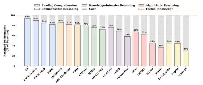 ️但在阅读理解方面,模型性能几乎不受影响,保留约81-93%。这证明涉及上下文推理的任务主要由Transformer的骨干网络处理,而非记忆模块。