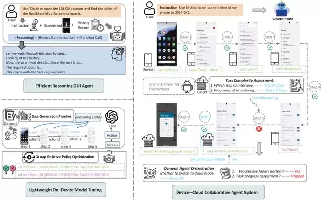 黄超解释道:“在 OpenPhone 项目中,端云协同框架不仅可节约模型本身的 token 开销,还能降低成本。但是,如果模型云端效果显著好于端侧,则依然会采用云端模型来进行操作。”