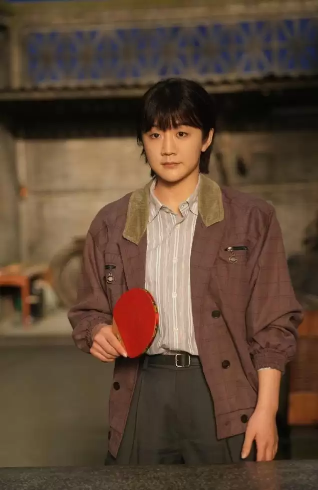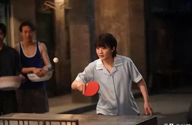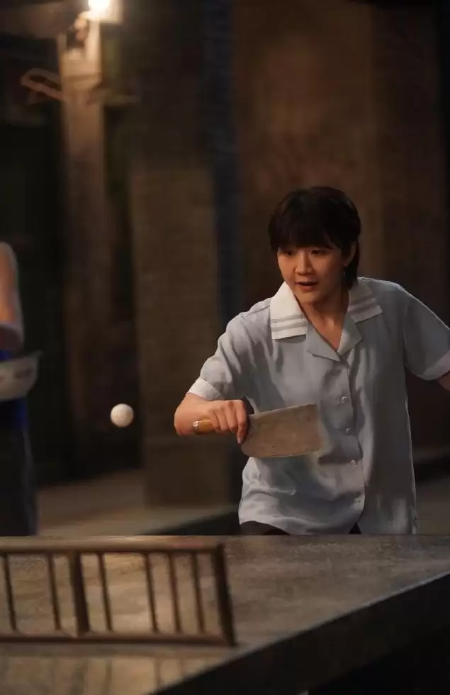 镜头里,她顶着复古的蘑菇头,穿着带年代感的衣服,站在球台前,手里拿的不是球拍,是菜刀。对面是黄晓明饰演的郑德诚,表情从自信到怀疑人生只用了几回合。