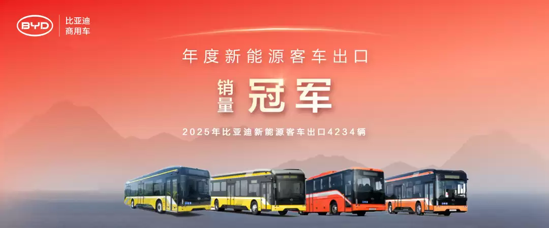 1月13日汽车行业传来消息,根据最新统计数据显示,2025年比亚迪新能源客车出口表现亮眼,以4234辆的交付量、同比增长18.2%、市场份额达24%的成绩,再次斩获年度销量冠军。至此,比亚迪已连续三年稳居该榜单首位,成为唯一一家新能源客车年出口量突破4200辆的企业。