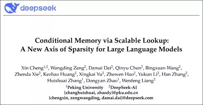 据报道,在这篇题为《基于可扩展查找的条件记忆:大语言模型稀疏性的新维度》(Conditional Memory via Scalable Lookup:A New Axis of Sparsity for Large Language Models)的最新论文中,介绍了一种名为“Engram”(记忆痕迹)的“条件记忆”(conditional memory)技术。