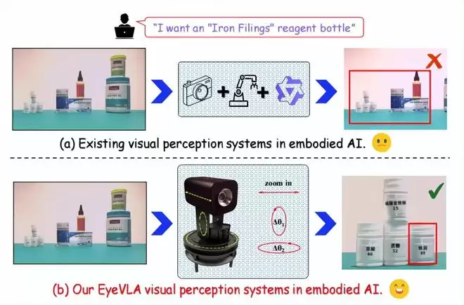 在一个测试里,杨佳澍等人让机器人辨认一下放在盒子里的笔的品牌。普通的固定摄像头根本无法拍摄到笔身的细节,而 EyeVLA 通过自动转动和放大,让笔身上的小字清晰可见,最终准确识别出了品牌。